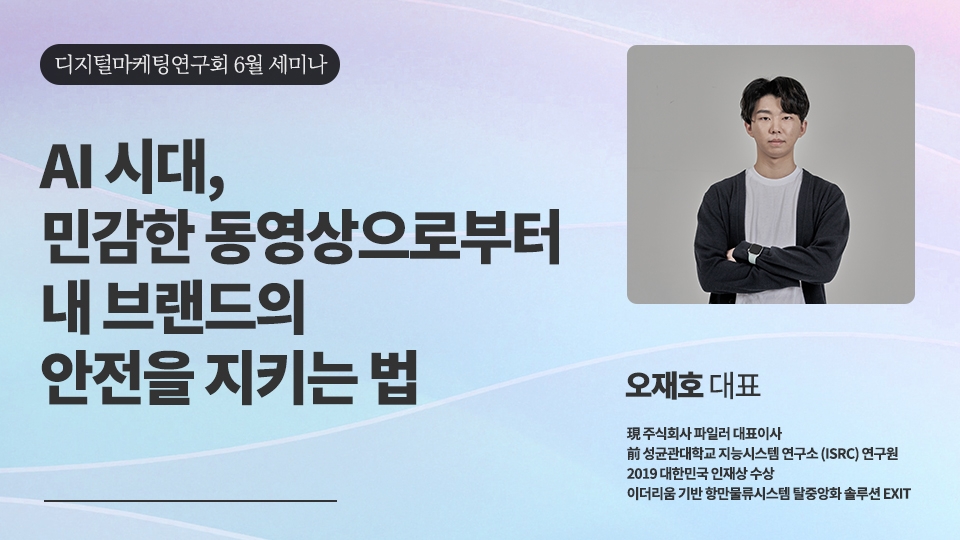 디지털마케팅 연구회(Digital Marketing Forum) 6월 세미나가 진행됩니다. 6월 주제는“AI시대, 민감한 동영상으로부터 내 브랜드 안전을 지키는 법“ 라는 주제로 진행 됩니다. 광고가 개인화 됨에 따