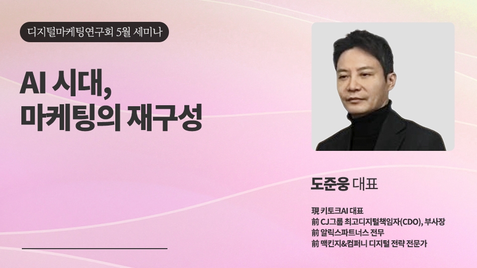 디지털마케팅 연구회(Digital Marketing Forum) 5월 세미나가 진행됩니다. 5월 주제는 “AI 시대, 마케팅의 재구성으로“ 라는 주제로 진행 됩니다. 바야흐로 AI시대가 되었습니다. AI는 디지털 환경에서