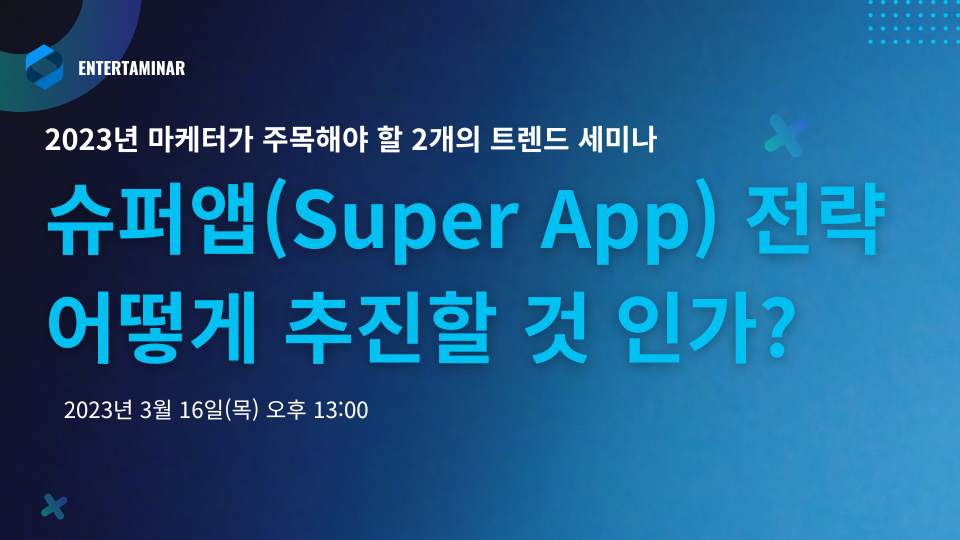 | [세미나]슈퍼앱(Super App) 전략 어떻게 추진할 것인가? (0) | 2023.03.07 |