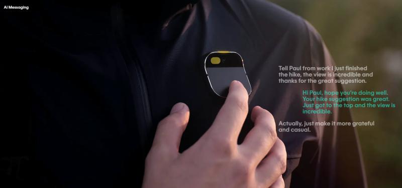 Ai Pin은 터치, 음성, 제스처, 손바닥에 투사되는 독특한 '레이저 잉크(Laser ink)' 디스플레이를 통해 AI의 모든 기능을 활용할 수 있도록 하여 기술과 상호 작용하는 방식을 재정의 하고 있다. Ai Pin