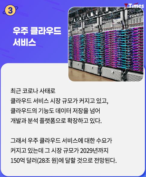 스페이스X 저궤도 위성을 활용한 통신네트워크 서비스인 '스타링크'를 통하여 기본적인 인터넷서비스 뿐만 아니라 빠른 네트워크 속도를 활용한 클라우드 서비스까지 확장할 수 있다.