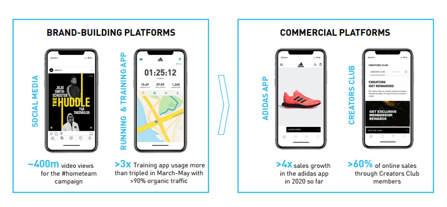 대부분 기업이 코로나 이후 재무적 안정성 추구를 위하여 마케팅 비용을 줄이는 상황에 디지털 브랜드 플랫폼 투자를 확대하겠다는 내용이 있어 좀더 내용을 살펴봤는데 이유는 견고한 디지털 브랜드 플랫폼이 D2C 플랫폼의 매출을 견인하는 역할을 하고 있으며 궁극적인 D2C플랫폼의 성공은 커머스 자체 보다는 고객관계 및 고객경험에 높여줘야 달성할 수 있기 때문에 이를 위한 투자를 지속적으로 확대하겠다는 것이다.