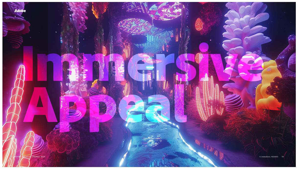 Adobe는 2025년 크리에이티브 트렌드 전망을 발표하며, 올해의 주요 트렌드가 현실과 상상의 경계를 넘나드는 특징을 반영한다고 밝혔다. 예를 들어, 2023년 전 세계적으로 주목받은 몰입형 전시와 AI 기반 창작 프로젝트들은 소비자와 창작자 모두에게 큰 영감을 주고 있으며, 이러한 트렌드의 확산을 뒷받침하고 있다. 2025년 트렌드는 창작자들이 상상력 넘치는 초현실적인 비주얼, 유머러스한 시각, 몰입형 경험 등으로 표현하는 창작 환경의 변화를 보여준다.