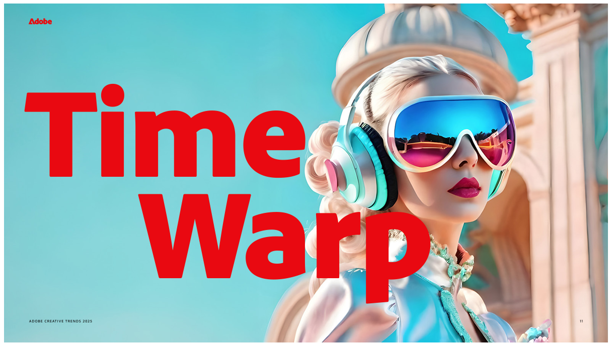 우주 경제가 연간 약 1조 달러의 수익을 전망하며 급성장하는 가운데, '시간여행' 트렌드는 레트로 퓨처리즘을 중심으로 주목받고 있다. AI의 발전은 과거와 미래 요소를 결합한 스타일을 더 쉽게 실험하고 구현할 수 있게 하여 이 스타일을 대중화시켰다. 예를 들어, 생성형 AI는 고대 로마의 건축물과 미래 도시 디자인을 결합한 비주얼을 손쉽게 제작하거나, 1970년대 레트로 음악과 최신 디지털 사운드를 융합한 새로운 음향을 만들어낸다. 이 트렌드는 고대 로마, 1920년대, 1970년대 등 다양한 시대의 스타일을 새롭게 재구성하며 과거에 대한 향수를 불러일으킨다. 특히, 빠르게 변화하는 세상에서 이 트렌드는 역사와 미래를 재해석해 세대 간의 연결을 강화하고 있다.