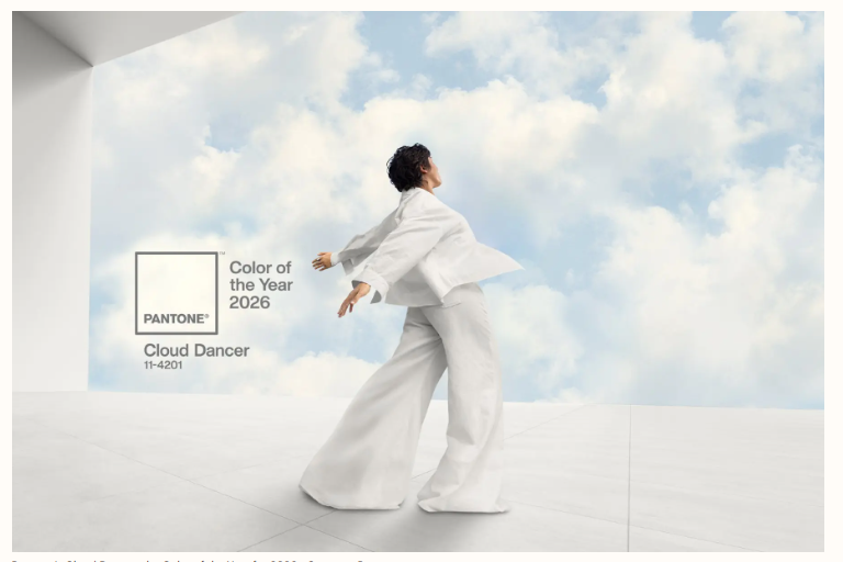 2024년의 ‘피치 퍼즈(Peach Fuzz)’와 2025년의 ‘모카 무스(Mocha Mousse)’가 따뜻함과 조화를 강조했다면, 2026년의 Cloud Dancer는 혼란의 시대적 배경 속에서 찾아야 할 차분함과 치유의 감정을 담았다. 특히 미국에서는 지난 12개월간 정치적 폭력과 사회적 불안이 고조되며 공공 분위기가 흔들렸고, 이러한 상황은 새로운 출발과 상호 이해의 필요성을 부각시켰다.