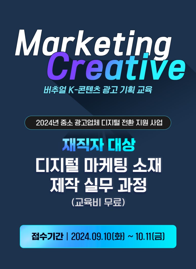 디지털 광고협회에서 디지털광고 및 마케팅 업계 대상 임직원 대상으로 콘텐츠기획 과정을 무료로 진행합니다. 특히 이번 과정에서는 실무현장에서 콘텐츠 기획에 '생성형AI''를 효과적으로 활용할 수 있는 다양한 방법들을 소개하고 실습을 진행합니다.