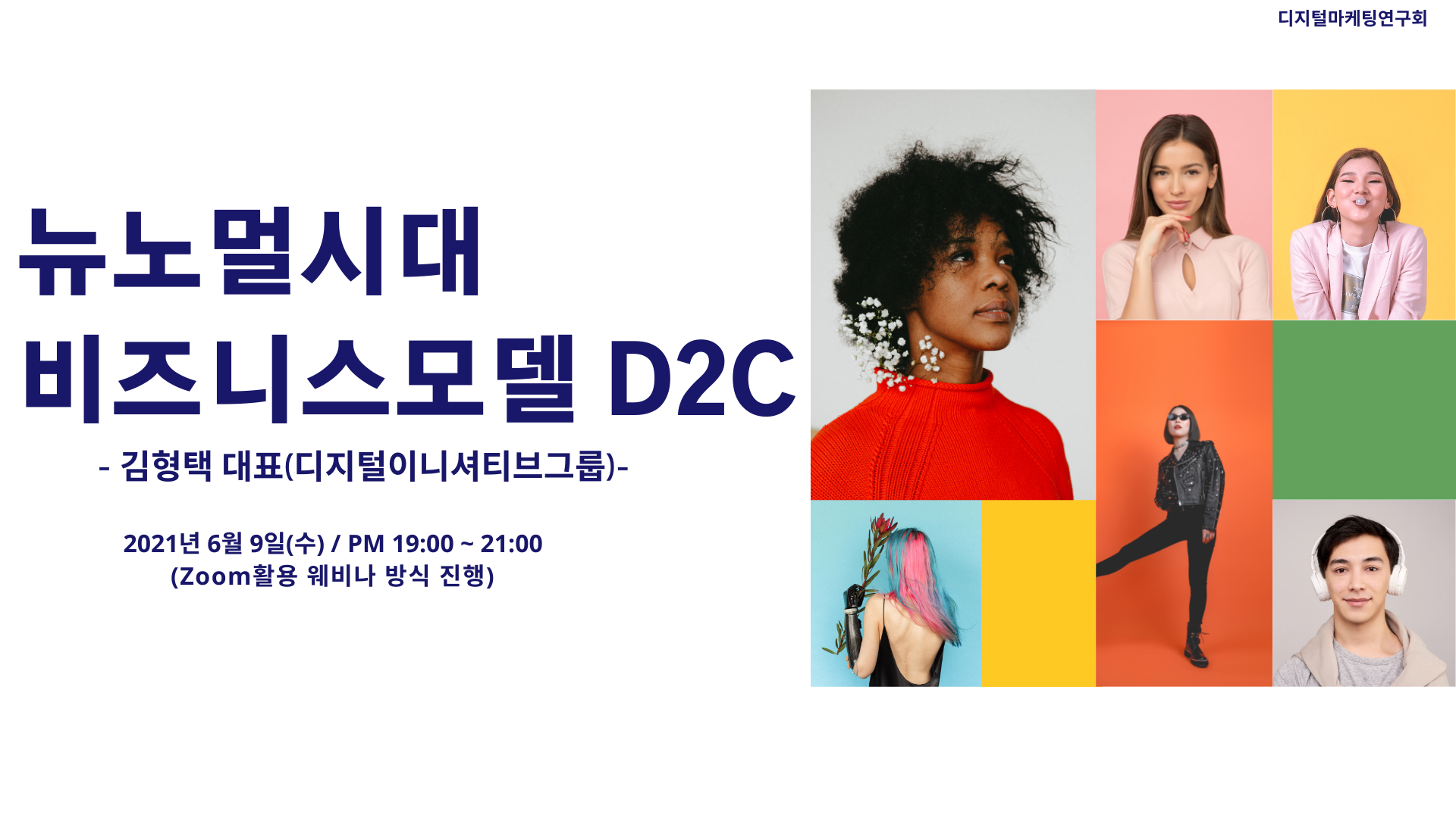 디지털마케팅 연구회(Digital Marketing Forum) 6월 세미나가 진행됩니다. 6월 주제는 ‘뉴노멀시대 비즈니스모델 D2C(D2C추진배경, 단계별 추진전략, 추진사례) ’ 라는 주제로 발표를 진행합니다. 관심 있는 분들의 많은 참여 바랍니다.