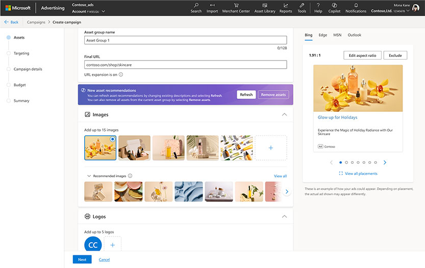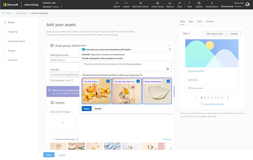 광고주와 대행사를 대상으로 특별히 제작된 Copilot은 AI의 힘을 빌려 제품 이미지, 헤드라인, 및 설명을 위한 새롭고 혁신적인 제안을 생성하는 도구이다. 이 도구의 사용 방법은 간단하다. 사용자들은 이미지와 같은 필요한 콘텐츠에 대한 설명만 제공하면, Copilot이 이러한 설명을 기반으로 자동으로 광고를 캠페인을 생성해 준다.